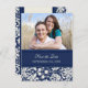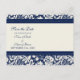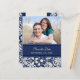 Foto del personalizado boda salve las postales del anuncio de fecha con elegante damasco floral color crema y azul marino oscuro, elegante y completamente personalizable con los detalles de su boda y su propia foto. También disponible en muchos otros productos para la fiesta de boda.