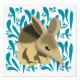 El cuarto de la serie de animales Bebés Australianos, esta impresión presenta un bebé de bigote contra un fondo verde azul de hojas de eucalipto y de guantes.
