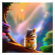 Un adorable chipmunk bebé en un árbol y un fondo de arcoiris.