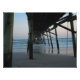 Esta muestra una foto tomada mientras el sol empezaba a ponerse en la hermosa isla de roble, Carolina del Norte. La foto se tomó debajo del muelle, mirando al océano, y al fondo del muelle, cuando llegaba más allá del surf. Se trata de una playa orientada al sur, por lo que la puesta de sol estaba a la derecha, y apenas empezaba a girar el cielo y las nubes de truenos lejanos rosados cerca del horizonte, lo que se refleja un poco en la arena, todavía húmeda del surf. Foto de Brent Wiggins, y usada aquí con su autorización.
