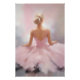 Retrato abstracto e impresionista pintado suavemente de una bailarina por detrás con un traje de tulle rosa.