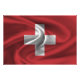 Foto impresa con la bandera de Suiza en un diseño de tela ondulada. Este diseño presenta los colores y el diseño de la bandera suiza con un hermoso efecto texturado de material ondulado. El diseño de esta bandera es una excelente manera de mostrarte orgulloso de ser de Suiza.