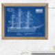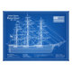 Este llamativo cartel de estilo plano azul representa el histórico barco clíper estadounidense Flying Cloud, un buque celebrado por su notable velocidad y elegante diseño. Construido en 1851 en East Boston por el famoso constructor naval Donald McKay, el barco representó la cúspide de la ingeniería de los clíperes durante la edad de oro del comercio marítimo. El trabajo de línea blanca sobre el fondo azul profundo se asemeja a los planos de ingeniería tradicionales, dando a la imagen una calidad técnica y artística.