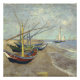 Barcos de pesca en la playa de Les Saintes-Maries-de-la-Mer Vissersboten op het strand van Les Saintes-Maries-de-la-Mer 1888 Vincent van Gogh A finales de mayo de 1888, van Gogh partió de Arles durante una semana para visitar la localidad costera de Les Saintes-Maries-de-la-la r. Estaba fascinado por los colores del Mediterráneo y por los "pequeños botes verdes, rojos, azules, de forma y color tan bonito que uno pensaba en las flores". Pintó este lienzo cuando regresó a su estudio en Arles basándose en estudios que había hecho anteriormente sobre el lugar.