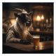 En un extraño giro de la realidad, una cabra ataviada se sienta confiadamente en la barra de un bar rústico. Su piel gruesa y sus cuernos espirales le confieren un encanto escarpado, ya que se inclina hacia una copa de cerveza. La iluminación cálida y tenue del bar arroja un resplandor dorado sobre el mostrador de madera. Este momento caprichoso capta una deliciosa mezcla de travesuras y humor, donde lo inesperado se convierte en el centro de la noche.
