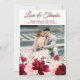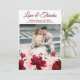 Boda foto gracias tarjeta, amor y gracias, con diseño floral rosa burdeos, flores de bonito con escritura elegante. nombres, fechas e información de personalizares.