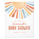 Welcome your little ray of sunshine with this Boho Sunshine Neutral Baby Shower Welcome Sign featuring an adorable yellow, gold, orange, blue and peach watercolor sunshine.
