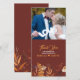 Mejore su gratitud con nuestras tarjetas de fotos de Boho Wildflower Terracotta Otoño de Boda otoño. Estas exquisitas tarjetas presentan un diseño encantador de flores silvestres bohemias en tonos terracota, que captan la esencia de la temporada de otoño. Perfecto para expresar aprecio a sus huéspedes con un toque personal, estas tarjetas combinan elegancia rústica con encanto de temporada sin esfuerzo. Elaboradas con materiales de alta calidad, ofrecen estilo y sentimiento. Impresione a sus seres queridos con la belleza natural de nuestra Boho Wildflower Terracotta Boda otoñal Gracias Cartas fotográficas, combinando el más sincero agradecimiento con una preciada memoria fotográfica. ¡Orden ahora para transmitir su gratitud de una manera memorable y personalizada!
