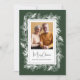 Marco botánico blanco vintage en la tarjeta de bienvenida de fotos de caza verde "Feliz Navidad" personalizada con tu nombre. Contáctame para obtener ayuda con tus personalizaciones o para solicitar productos adicionales de correspondencias o coordinación de Zazzle para tu temporada de vacaciones.