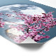 Pintura de búho en la rama florida de un árbol frutal, con una luna llena en el fondo. Derechos reservados ©2018 Kimberly J Tilley.