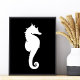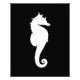 Forma blanca de un caballo de mar sobre un fondo negro.
