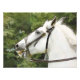 Un diseño acuarela de un hermoso caballo blanco esperando impacientemente galopar.