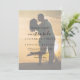 Esta fotografía de caligrafía nuestra boda boda boda boda boda boda boda es perfecta para un boda rústico. El diseño, sencillo y elegante, presenta una tipografía de escritura clásica y elegante con una foto de una pareja descolorida al fondo.