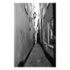 Imagen en blanco y negro de una antigua calle estrecha en el casco antiguo de Estocolmo, Suecia.