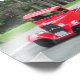 camioneta roja clásica con motor v8 conduciendo por la calle