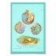Ilustracion de conchas marinas de arte fino del artista alemán y naturalista Georg Wolfgang Knorr. Efecto acuarela sobre el fondo azul del huevo de un ladrón.