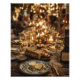 Warm golden candlelight dances across a rustic wooden table set with crusty bread, creamy cheese, crystal wine glasses, and an open bottle of white wine, while soft bokeh string lights twinkle in the background. Elegant lace details and blurred figures create an intimate, celebratory atmosphere of a magical outdoor dinner party under the stars. This romantic, glowing scene brings instant warmth and elegance, perfect for canvas prints, posters, throw pillows, mugs, mousepads, and home décor that turns any space into a sophisticated evening escape.