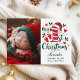 Celebra tu primera Navidad con este alegre diseño que incluye un número uno con rayas de caramelo, un sombrero festivo de Papá Noel, huellas de bebé rojas y juguetones acentos sagrados. La encantadora mezcla de guion verde y negrita añade un toque acogedor y alegre a tu paladar. Personalice con el nombre del bebé y los detalles de su nacimiento para una pieza verdaderamente memorable.