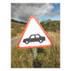 Una vieja señal de advertencia no oficial que no muestra acceso vehicular a lo largo de esta estrecha y difícil carretera de montaña.