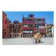 Pintura de la plaza de Venecia. Carro con cajas en medio de la antigua plaza italiana con edificios coloridos en Venecia, Italia. Servicio postal de entrega en Italia. Cajas en paz.