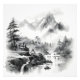Foto Casa asiática en pinturas de tinta de montañas