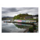 Foto de las coloridas casas portuarias de pescadores de la ciudad de Portree, con un reflejo en el agua fija del mar en la Isla de Skye en Escocia, Reino Unido.