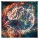 Cassiopeia A (Cas A) es un remanente de supernova ubicado a unos 11.000 años luz de la Tierra en la constelación Cassiopeia. Aproximadamente abarca 10 años luz. Esta nueva imagen utiliza datos del Instrumento de Infrarrojo Medio (MIRI) de Webb para revelar Cas A con una nueva luz. En el exterior del remanente, particularmente en la parte superior e izquierda, hay cortinas de material que parecen naranjas y rojas debido a la emisión de polvo caliente. Esta marca es donde el material expulsado de la estrella explotada se adentra en el material circundante.