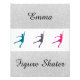 Chica Figura Skater - Ampliación de la foto - Personalizada con su nombre. Espuma de purpurina de imitación de plata con 3 patinadores de figuras de diferentes colores en el centro.