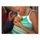 Foto de un joven chica rubio sosteniendo un patito bebé
