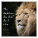 Christian Art with the face of a lion showing strength and boldness. The scripture text reads: The Righteous Are Bold as a Lion, Proverbs 28 Vs 1. Christian inspiration poster for Evangelical and Bible Faith believers. For Home Decor.