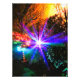 This is a photo of our front yard last Christmas our property on Vancouver Island in British Columbia, Canada.. It shows a reflection of colored lights against the backdrop of a beautiful sunset.