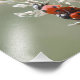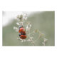 Fotografía de cerca de dos aves silvestres comunes (Coccinella septempunctata), también llamadas tortilleras de siete puntos o ladybugs de siete manchas, colocados uno encima del otro, en el tallo de una pequeña planta herbácea en un prado.