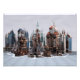 Representación digital 3D de una ciudad futurista de ciencia ficción sobre un fondo de cielo gris