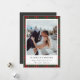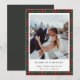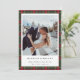 Tarjeta de Navidad personalizada para recién casados con un patrón clásico de cuadros de Navidad con mensaje y foto de vacaciones personalizados.