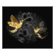 Colibríes con joyas negras y doradas sobre un fondo gris adornado con plantas. Aves de joyas. Ave dorada. Ave dorada.