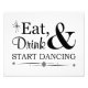 Este cartel de baile de estilo retro "Comer, beber y comenzar" es una combinación de blanco y negro con un toque de los años 50. Esta impresión será el complemento perfecto para la recepción de tu boda para animar a tus invitados a salir en la pista de baile.
