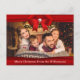Un moderno diseño de tarjetas de Navidades de fotografía con una foto familiar llenando la cara de la tarjeta. Navidades de cintas rojas enmarcan tu foto y tus palabras a continuación. Puede personalizar el saludo de los Navidades de fondo, su dirección de retorno y sus nombres en script cerca de la parte inferior con espacio para que añada una nota personal manuscrita.