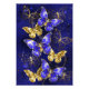 Composición de lujosas mariposas de zafiro y joyas de oro sobre fondo de textura azul.