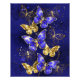 Composición de lujosas mariposas de zafiro y joyas de oro sobre fondo de textura azul.