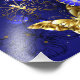 Composición de lujosas mariposas de zafiro y joyas de oro sobre fondo de textura azul.