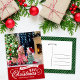 Tarjetas postales de Navidad personalizadas y asequibles con una sencilla plantilla DIY para personalizar. Este diseño colorido presenta tipografía caprichosa en colores rojo y verde. El mensaje dice "Deseándote una muy feliz Navidad". Agrega la foto de tu familia en la parte superior con un borde sutil de superposición de nieve. Utiliza las herramientas de diseño para editar las fuentes y los colores. Utiliza la parte posterior para agregar más texto y fotos si es necesario.