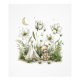 Crea una atmósfera tranquila y soñadora con esta adorable ilustración de acuarela de un dulce conejo sentado entre hierba suave y flores silvestres bajo una luna suave y estrellas brillantes. Diseñado en una paleta de colores neutros y suaves con un encanto de libro de cuentos, esta impresión es perfecta para la habitación de un bebé, el dormitorio de los niños o como un regalo considerado para un baby shower.