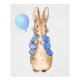 Conejo Pedro sosteniendo un globo azul.