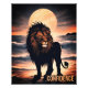 Poster inspirador de Confianza en los Leones Oceánicos. Hermoso León de pie junto al océano Gran Luna en el fondo. Este León inspirado por IA está compartiendo algo de confianza inspiradora. Se vería genial en cualquier habitación, clase u oficina.