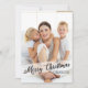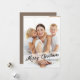 Un dulce deseo para una Feliz Navidad se envía con este diseño moderno que presenta una bonita fuente cursiva con letras a mano escrita a través de tu foto y resaltada por una muestra transparente de blanco. Un sencillo pero encantador saludo contemporáneo para mandar a la familia y amigos esta temporada de vacaciones. En la parte trasera hay espacio para que añada su mensaje personal/saludo o personalizar con fotos adicionales si lo desea.