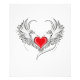 Corazón rojo pintado de forma artística con alas de ángel gris, decorado con un contorno suave negro.