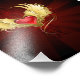 Corazón rojo brillante de un ángel con alas doradas brillando en el fondo rojo oscuro y radiante decorado con un patrón.