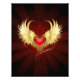 Corazón rojo brillante de un ángel con alas doradas brillando en el fondo rojo oscuro y radiante decorado con un patrón.