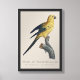 Esta imagen es una ilustración de historia natural finamente detallada de un joven perico sol, históricamente referido en francés como “Guarouba dans son jeune âge”. La obra de arte captura al ave posada con gracia en una rama texturizada, mostrando tanto precisión anatómica como refinamiento estético típico de la ilustración científica temprana.