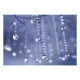Una imagen en 3D de una lámpara de araña de cristal. Múltiples hebras de perlas de vidrio espumoso captan la luz para crear un bonito bokeh al fondo. Las gotas de vidrio borrosas se reflejan claramente en las bolas de cristal muy enfocadas en primer plano. Las ramas plateadas de la candelabra y el suave ambiente azul y las luces dan un resplandor nocturno a la pieza. Creado en Vue.
